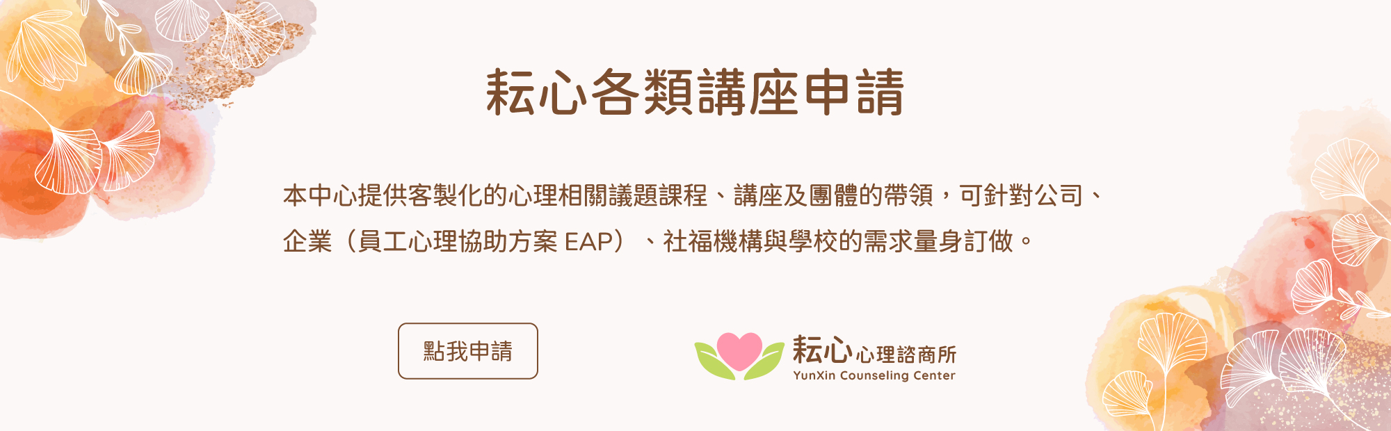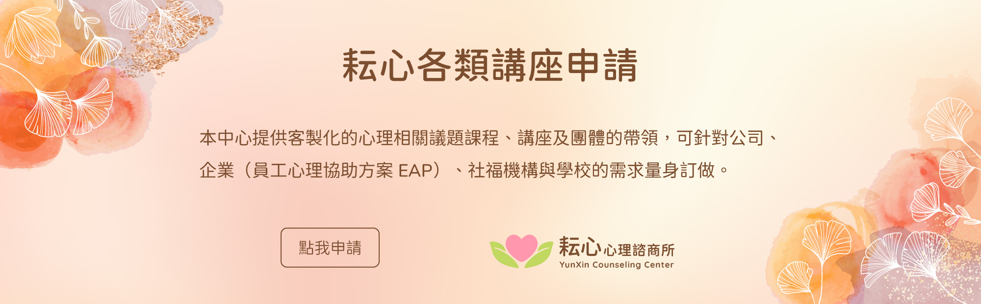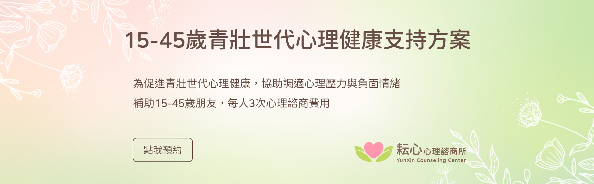 專注於自我探索、情緒支持、自殺自傷危機處遇、精神疾病調適、家庭照顧者支持、親密關係及伴侶諮商等議題。