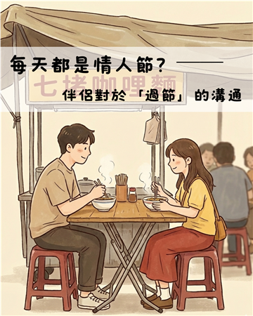 尋找共識:浪漫不一定要吃昂貴大餐,你們可以討論出兩人都舒服的慶祝方式。哪怕只是下班後一起去吃碗熱呼呼的七堵咖哩麵,也是專屬你們的默契。